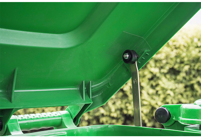 3)輪軸為插入防盜式結(jié)構(gòu),100%高密度聚乙烯HDPE原生料一次注塑成型。橡膠硬度測(cè)試達(dá)到60確保清運(yùn)過(guò)程動(dòng)作平穩(wěn),便于清洗。